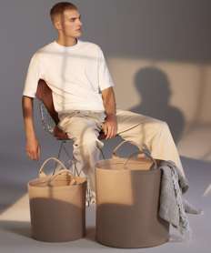 Denim barrel bag
