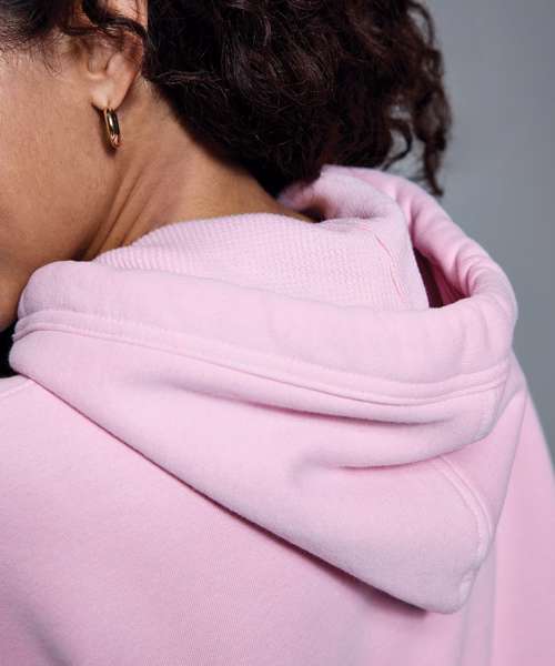 Shaped to fit. 320gsm. Peached fabric, soft-feel finish. Waffle knit hood. High polished, nickel free eyelets and drawcord ends. Polyester dyed to match tubular draw cord. Brushed fleece inner. Twin-needling detailing creates a high quality finish. Cut and sew two by one ribbed cuffs and hem. Kangaroo pouch pocket. Self-coloured neck size label.