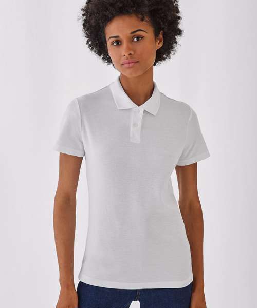 The Basic by B&C Polo for women. Short-sleeved piqué polo shirt. 1x1 rib flat knitted collar. 2-button placket reinforced with fusible interlining. Matching colour buttons. Necktape. Side seams.