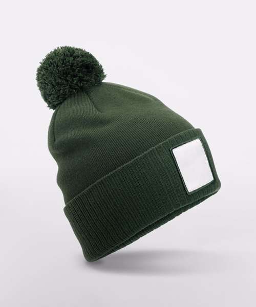 Contains 100% certified recycled material. Double layer knit. Cotton twill patch for decoration. Self-coloured pom pom. Microfleece lining for comfort and warmth. TearAway label for ease of rebranding.