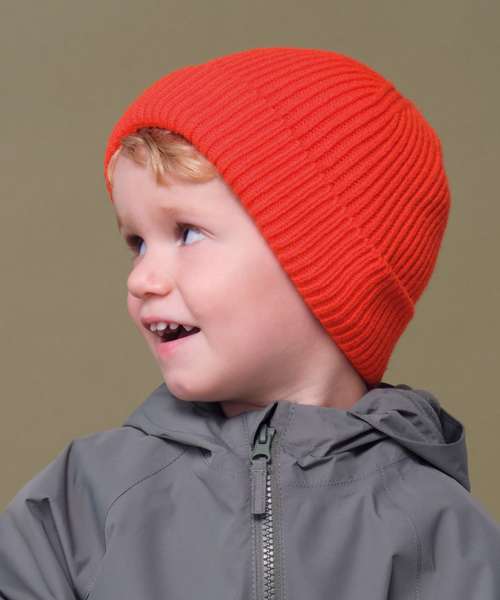 The Kids fashion beanie adds colour to playground, sports day and retail collections. Made from a recycled polyester/elastane blend, this stretch beanie features a soft, single-layer rib knit for flexibility and easy wear. A wide cuff offers reliable branding space, making it ideal for children’s streetwear labels.