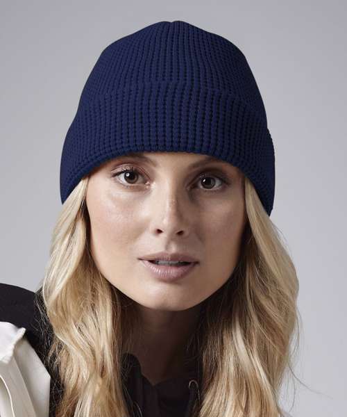 With its tactile waffle knit texture, the BC52N Organic cotton waffle beanie is soft, comfortable, and skin-friendly. The cosy, double-layered design features an easy-to-decorate turn-up cuff and a snug unisex fit. The natural and breathable qualities of the 100% certified organic cotton make this beanie perfect for milder days, meaning this ethically-made, sustainable style can be worn all-year round.