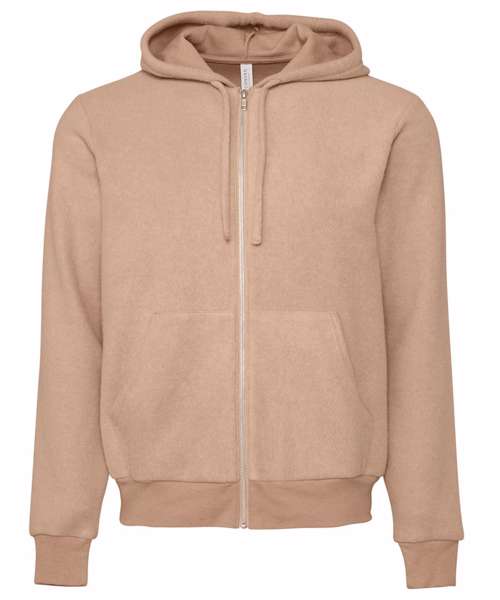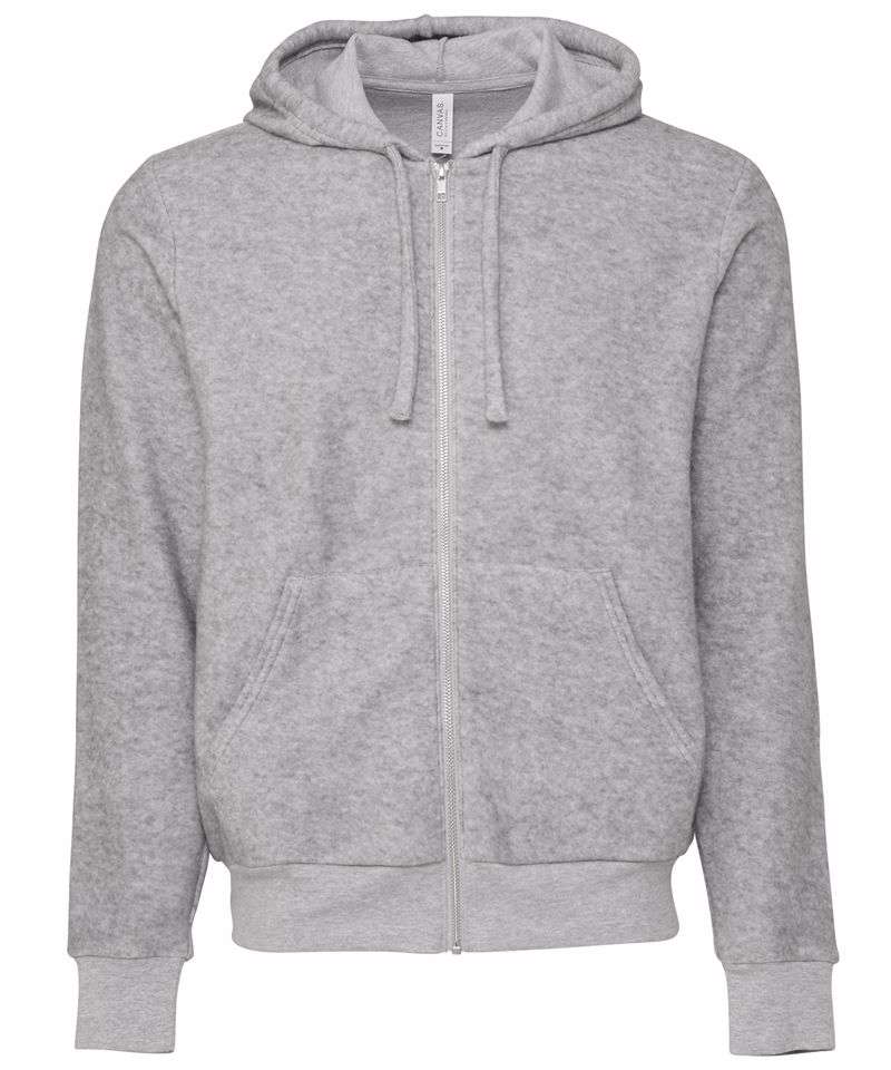 Super soft sueded fleece. Two-tone ribbing. Tear-away label. Side-seamed. Retail fit. Self-drawcords. Zipper.