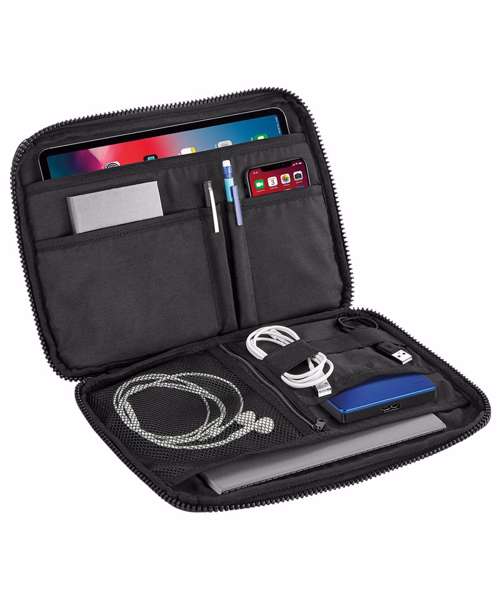 TearAway label for ease of rebranding. Contemporary slimline design. Tablet compatible up to 11". Padded internal iPad/ Tablet compartment. Padded zippered main compartment. Front slip pocket. Front pocket designed for easy decoration. Can be decorated front and rear. Elasticated cable organiser. Soft-touch lining. Zippered internal mesh pocket. Multiple internal pockets.