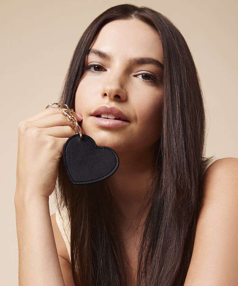 Saffiano fine grain. High-shine metal key clip. Can be used as a keyring or bag charm. Designed for decoration.