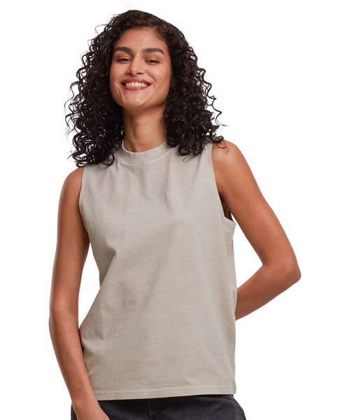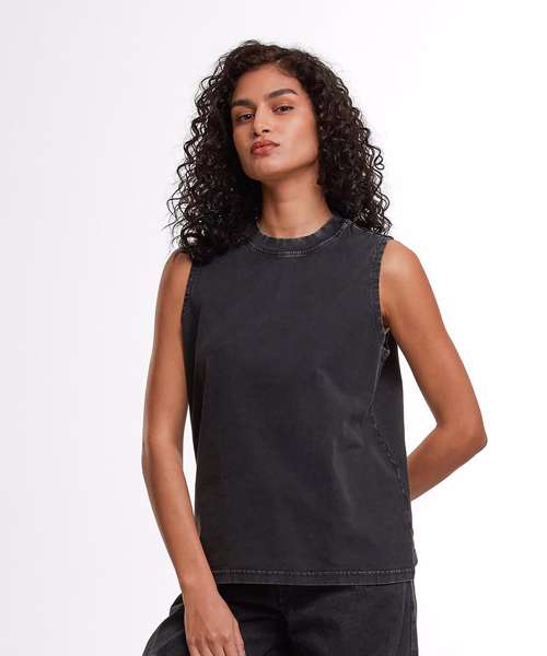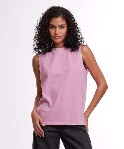The Women’s vintage washed sleeveless tee has a casual fit, the vintage wash giving it a unique, used look that’s perfect for a relaxed yet fashionable style. Light and airy, it’s perfect for warm days.