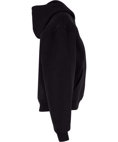 Oversized fit. Hood. Customisable kangaroo pocket. Ribbed cuffs and hem. Ends just above the hip. Half-moon at the neck.