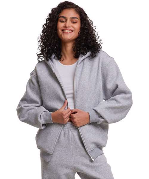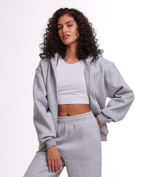 Oversized fit. Full metal zip. Hood. Divisible, customisable kangaroo pocket. Ribbed cuffs and hem. Half-moon at the neck.