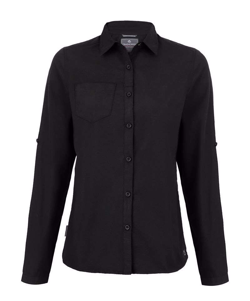 Long-sleeved sun-protective shirt made with fabric too tough for insects to bite through. Recycled polyester cotton shirting and recycled zip tape. UPF 40+ sun protection. Nosi Defence technology.