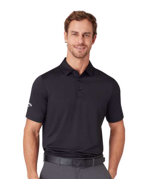 This Swing Tech™ polo features moisture/wicking and cooling technology to keep you dry and cool. Easycare machine washable. Featuring a self/collar and 3/button placket. Callaway Tour logo embroidered on the right sleeve in contrast colours and a tonal Chev on the inside placket.