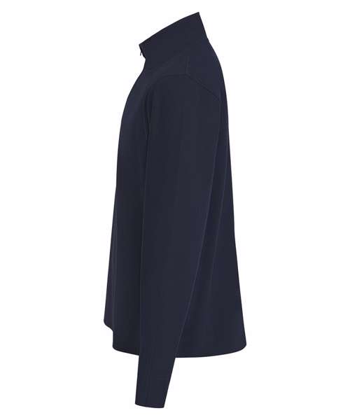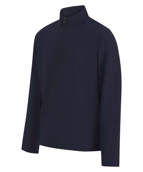 Premium 1/4-zip top, regular fit. Durable piqué front fabric, with brushed back fleece. Antique brass centred zip. Woven collar facing. Flatlocked seams at cuffs. Rear-locker patch. Stepped hem with woven facing. Side vents with herringbone tape. Tag-free for easy rebranding.
