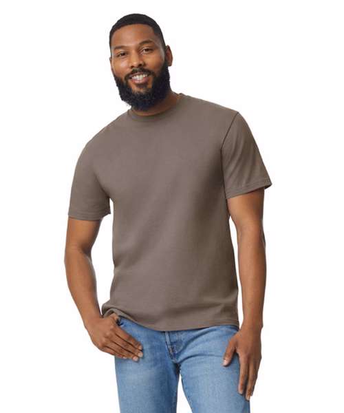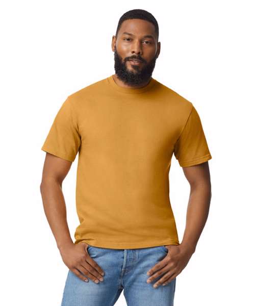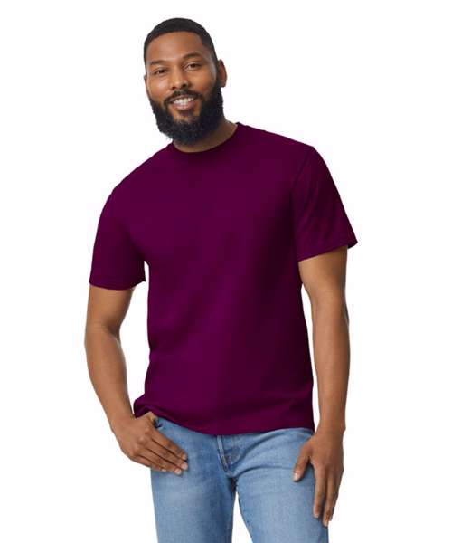 Made with our soft ringspun cotton and cotton blends, the Softstyle™ midweight adult t-shirt features high stitch density fabric that offers a smooth printing surface, ideal for DTG. Soft ringspun fabric feels great against your skin. Non-topstitched, classic width, rib collar. Taped neck and shoulders for comfort and durability. Modern classic fit, tubular body. High-performing black tear-away label.