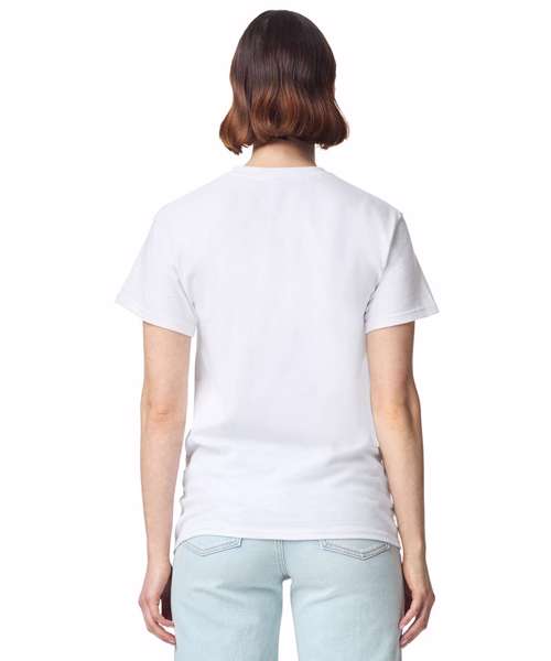 100% US cotton, 205gsm. 18/1 yarn count. Classic fit. Seamless body. Tear-away label. Taped neck and shoulders. Increased body and sleeve lengths to accommodate shrinkage. Optical brighteners allow more consistent dye adherence.