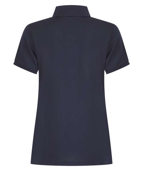 Polo shirt made from recycled polyester yarn with wicking properties. Regular fit with three-button placket. Henbury stand-up collar. 1x1 ribbed collar and cuffs. Dyed-to-match buttons. Female fit with shaped side seams. Henbury cut-out label for easy rebranding.