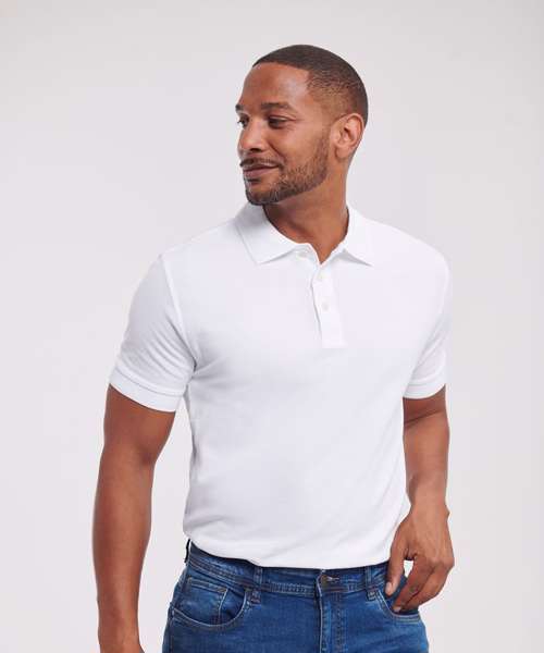 Combed cotton fine pique for superior hand feel and durability. Contemporary cut with 3 button placket. Garment pre-shrunk and suitable for wash up to 60°C and low tumble dry. An excellent surface for decoration.