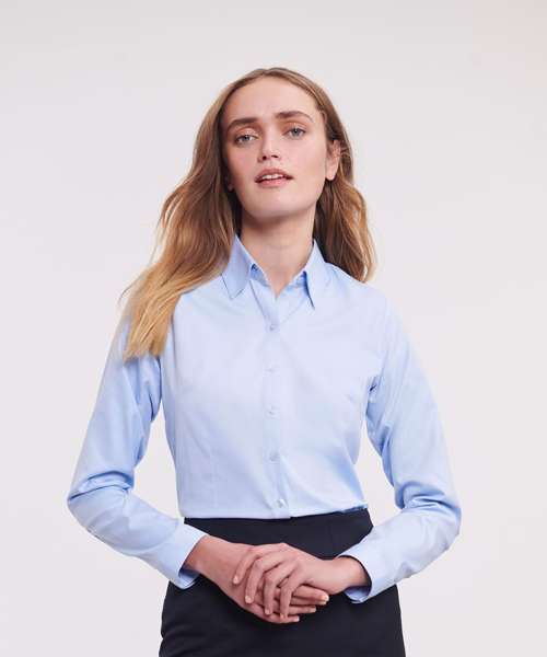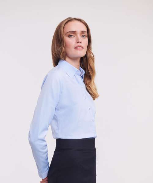The first herringbone shirt to the imprint market. The ideal combination of style and durability, a contemporary alternative to the Oxford. Classic retail fabric. Easy care. No show through. Fitted fit. Neat, modern collar. Narrow width placket. Stylish, narrow cuff with extended gauntlet. Darts at chest, front and back hem.