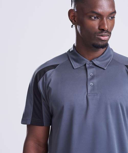 Contrast inserts on front and back sleeves. Raglan sleeve design. Self coloured buttons. AWDis' own Neoteric™ textured fabric with inherent wickability and quick drying properties. Self-fabric taped back neck. Twin needle stitching detail. Self-fabric collar with 3 button placket. Simple tear out label makes it perfect for rebranding. UPF 30+ UV protection.