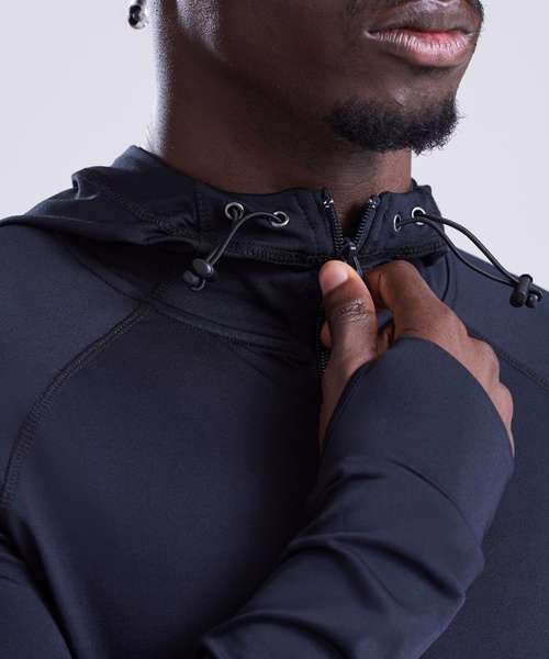 Push your limits with this innovative zoodie. Dual weights allows you to focus on your workout goals. When the nights get chilly or you need something to throw on to and from the gym, the cool sports zoodie combines wicking performance with lightly brushed fabric on the body. Adjustable attached hood protects from the elements while the raglan sleeves and thumb holes offer great range of motion.
