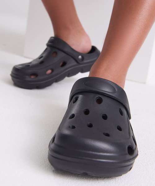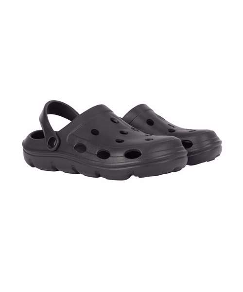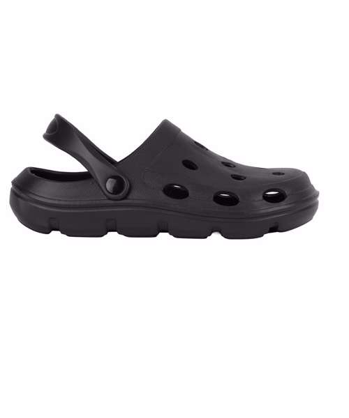 Slip-on style. Moveable heel strap, providing a secure fit. Ventilation holes for breathability. Lightweight.