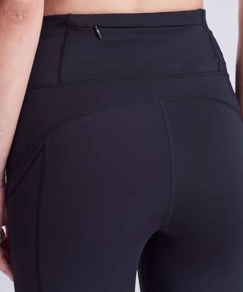 Four-way stretch for maximum movement. Side phone pockets. Adjustable waist cord. Back zip pocket. Ergonomic fit avoiding high-abrasion areas for maximum comfort. Made with recycled polyester.