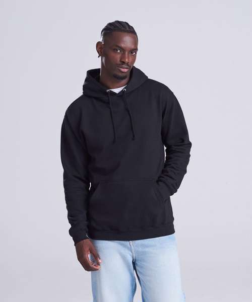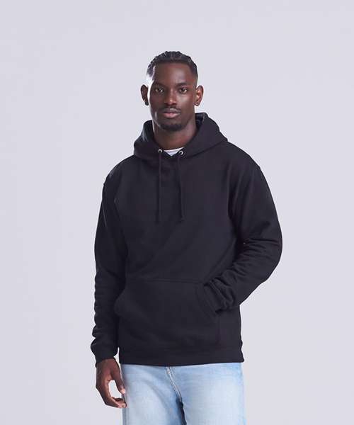 Twin-needle stitching detailing. Double fabric hood with self coloured cords. Kangaroo pouch pocket. Ribbed cuffs and hem. Soft cotton faced fabric creates ideal printing surface. Simple tear out label makes it perfect for rebranding. Brushed inner fabric.