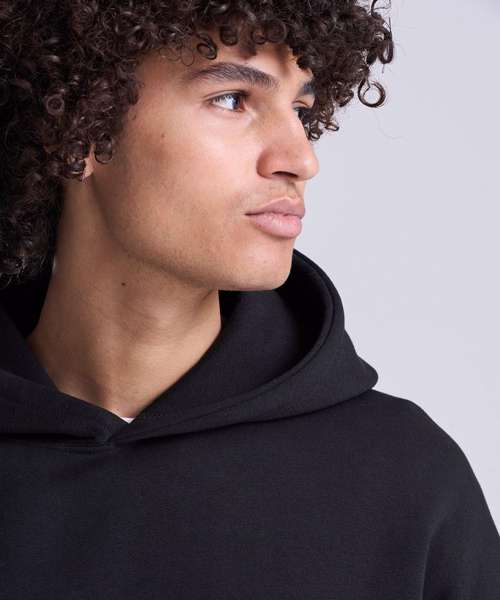 Heavyweight. Relaxed fit. Three-panel self-fabric hood with no drawcords. Kangaroo pouch pocket. Ribbed cuffs and hem. Locker patch. Brushed inner fleece. Twin-needle stitching detail. Size label only. 100% cotton-faced fabric.