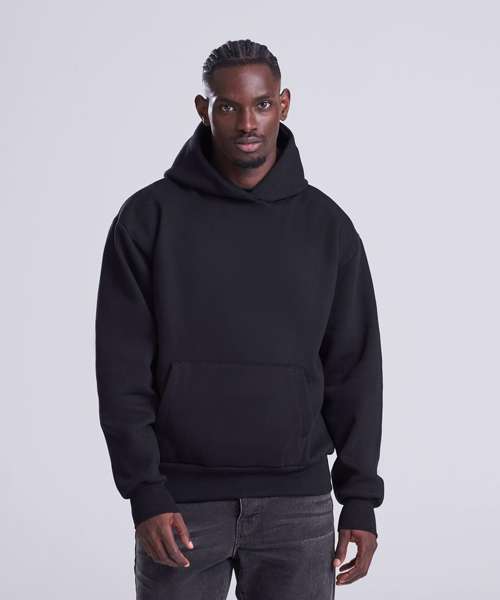 This unisex hoodie ensures maximum style with minimal effect. Made with a heavyweight, premium, cotton-rich fabric, it has an oversized boxy fit, true to size. Features include a large pouch pocket, ribbed cuffs and hem. A hoodie to keep you warm and comfortable – and an everyday essential.
