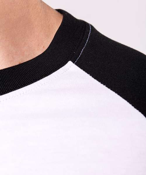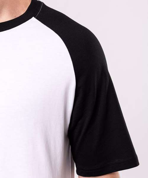 100% Cotton. Contrast raglan sleeves and neck rib. Neck rib contains elastane. Side vents. Twin needle finishing. BSCI certified. Oeko-Tex certified.