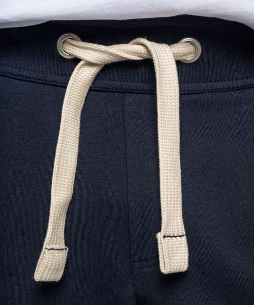80% combed cotton/20% polyester. (Oxford Grey : 76% combed cotton / 21% polyester / 3% viscose). Low shrinkage French Terry. Large waistband with drawcord. 2 front pockets. 1 rear pocket with raw edges. Twin needle finishing at the hem. Certifié STANDARD 100 by OEKO-TEX®N° CQ1007/7, IFTH.