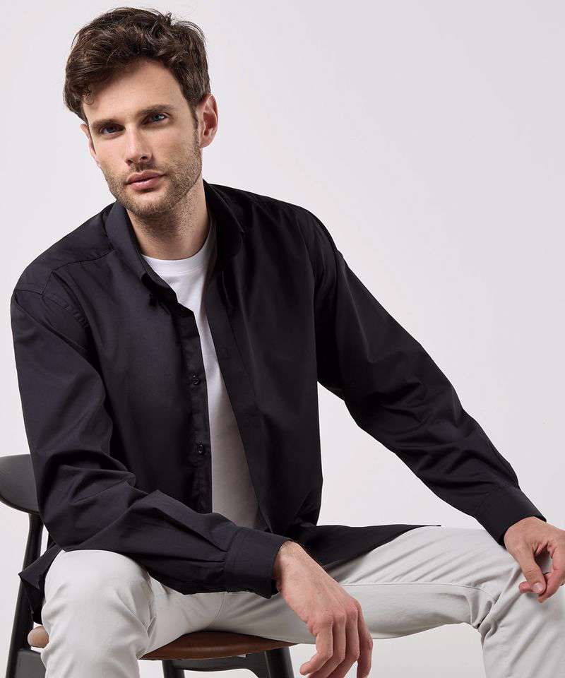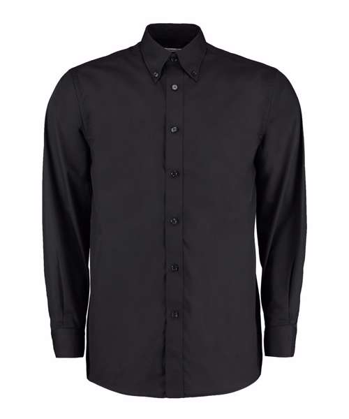 Fused stand-up button down collar. Two pleats at the back. Rounded hem. Optional chest pocket. Single-stitched yoke and armhole seams. Double-stitched side and sleeve seams. One button adjustable cuff. Spare buttons. Kustom Kit® woven back neck label.