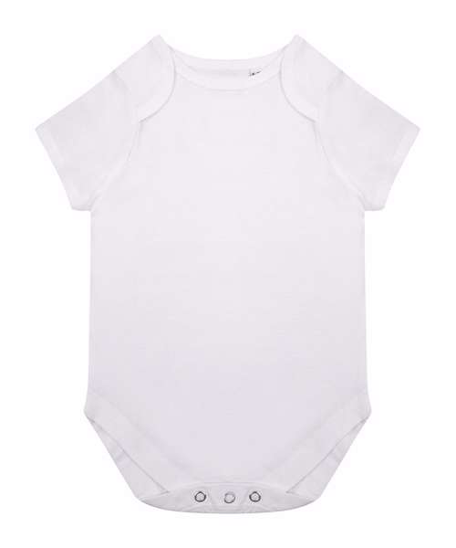 Making a change, this super-soft organic cotton bodysuit has YKK popper fastening on the gusset with self-coloured binding around the envelope neckline.