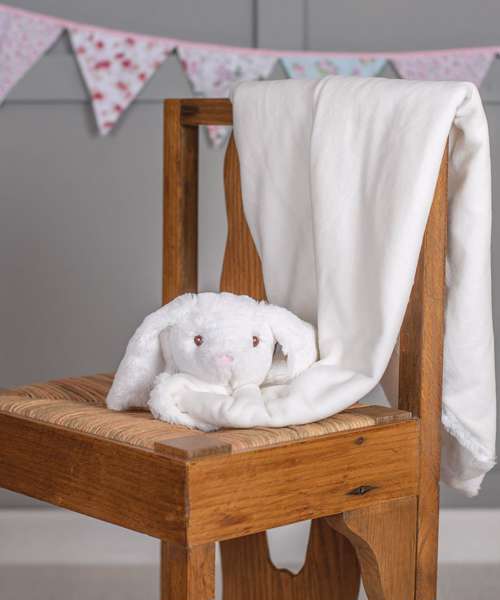 Soft plush animal blanket with a double-layered blanket and either an elephant or bunny head. Zip access allows the blanket to be directly embroidered, vinyl or sublimation printed. Complies with EN71 European Toy Safety regulations. Remove all hang tags and their fasteners before giving this item to a child. Suitable for all ages.