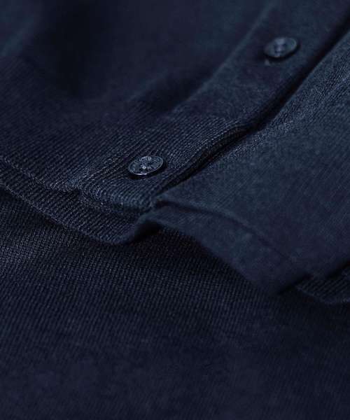 Certified organic cotton. Fine-gauge knit. Excellent shape retention. Feminine round neckline and elegant tone-in-tone buttons. Rib at neck, sleeves and bottom hem. Organic Content Standard Blended (OCS Certified, CU1038206).