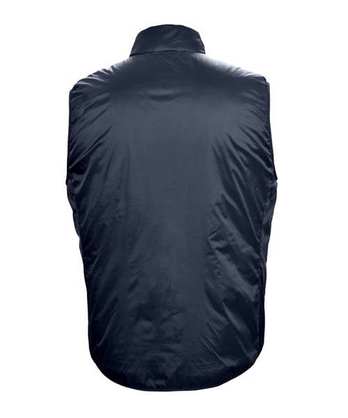 Shell and lining from recycled nylon. Lightweight. Elasticated band finish at hem and armholes. Side pockets with zip. Inner pocket with zip. Water-repellent. Recycled nylon. BIONIC FINISH® ECO – impregnation. Sorona® Aura – Eco-efficient performance fibre. Global Recycled Standard (GRS Certified, CU1038206).