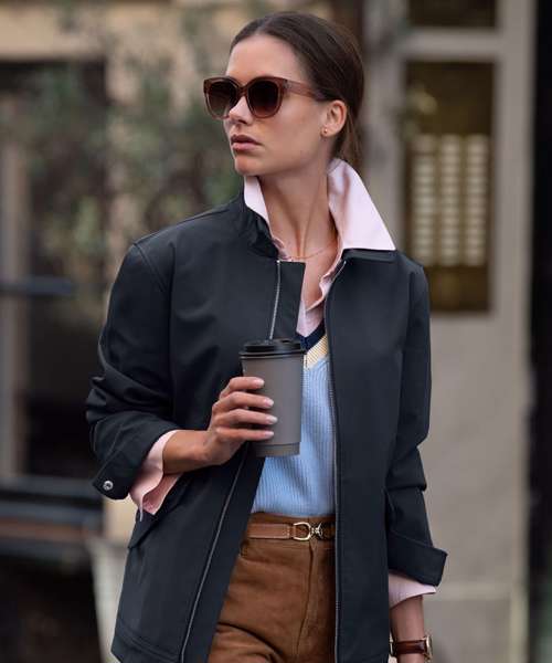 Satin lining. Wind placket behind the main zip. Button closure at sleeves and pockets. Inner pocket with zip. Water-resistant, windproof, breathable and water-repellent. Recycled polyester. BIONIC FINISH® ECO – impregnation. Global Recycled Standard (GRS Certified, CU1038206).