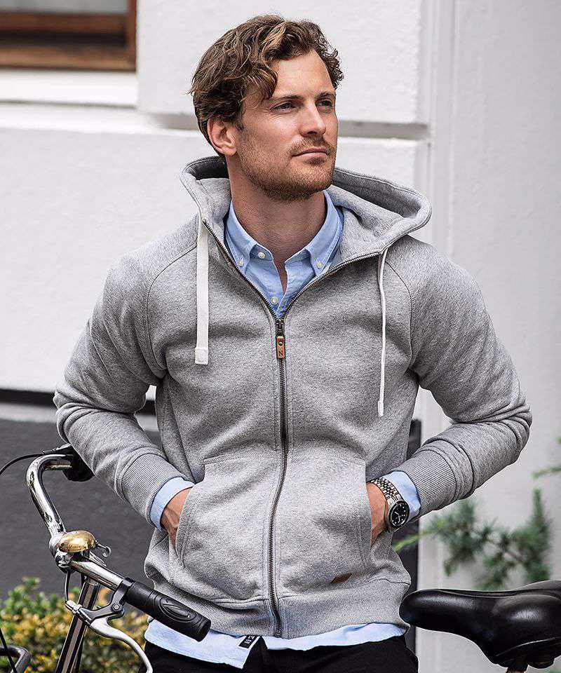 The desirable, modern, hooded Williamsburg sweatshirt – in a comfy, organic, cotton-rich blend – is stylish enough for work and fashionable enough to wear around town. ‘Style’ is a keyword for our design team, hence eye-catching elements such as rugged drawstrings, leather detailing, trendy signature neck loop and YKK zip. The brushed fleecy lining and the short-shave treatment offer a long-lasting luxurious feel.