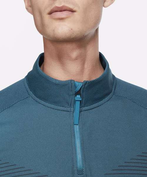 Nike Dri-FIT ADV technology combines moisture-wicking fabric with advanced engineering and features to help you stay dry and comfortable. Raglan sleeves eliminate shoulder seams to increase comfort and reduce fabric bunching through your swing. The hem vents are set at a slight angle so you can easily layer it over a polo or another baselayer. The half-zip lets you vent out extra heat, or it can keep the cold away during chilly tee times. The textured zip pull is easy to grip with a glove on. The zip guard at the top of the collar feels soft and smooth beneath your chin. Standard fit for a relaxed, easy feel.