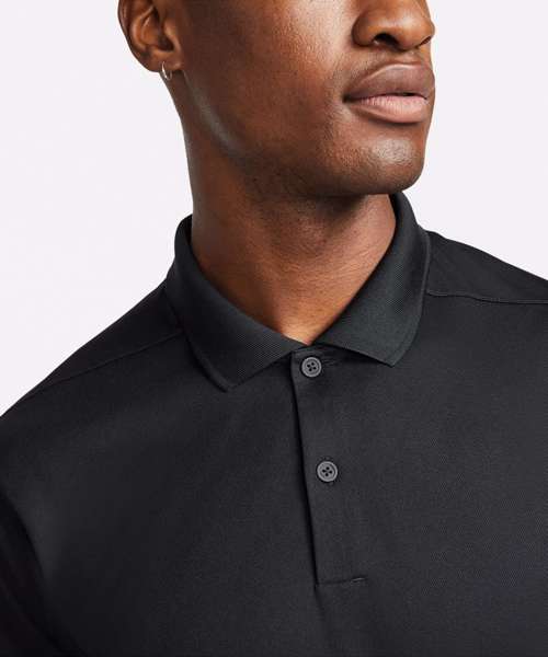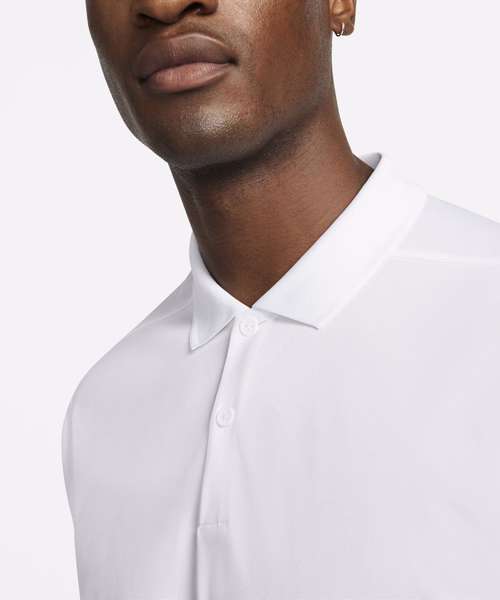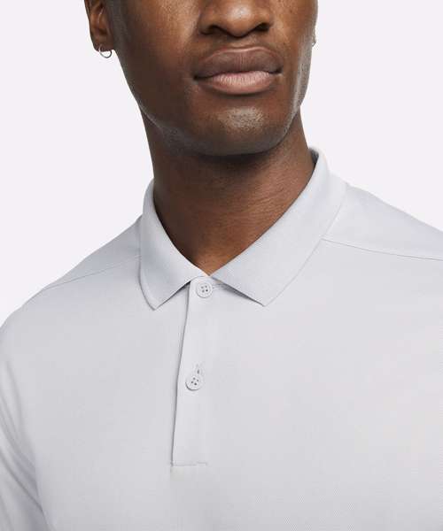 Nike Dri-FIT technology moves sweat away from your skin for quicker evaporation, helping you stay dry and comfortable. Shoulder seams are rolled forward so you can fully power through your swing. Collar is ribbed to help prevent curling. Swoosh is on the left sleeve so you can easily apply custom graphics like a logo or a crest to the chest.