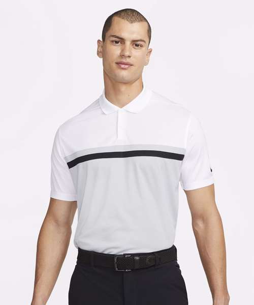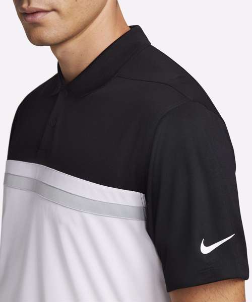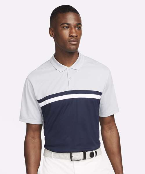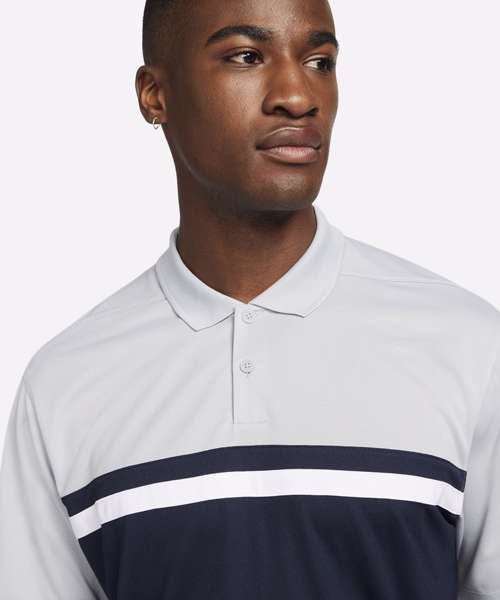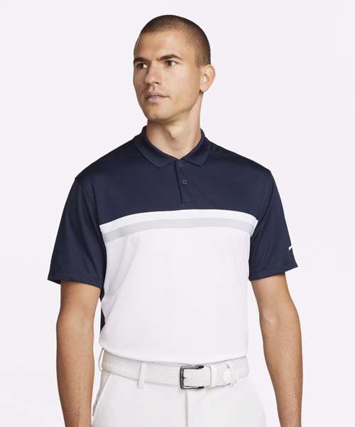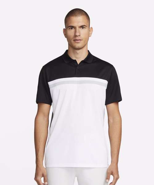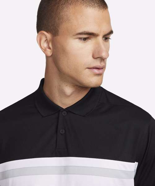 Crafted from breathable, sweat-wicking fabric made from 100% recycled polyester fibres, the Nike Dri-FIT Victory colour block polo puts a sustainable spin on golf performance. The collar and buttons were also made using recycled materials.