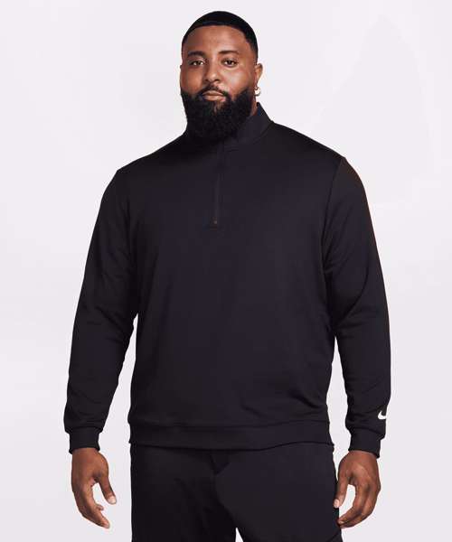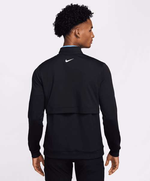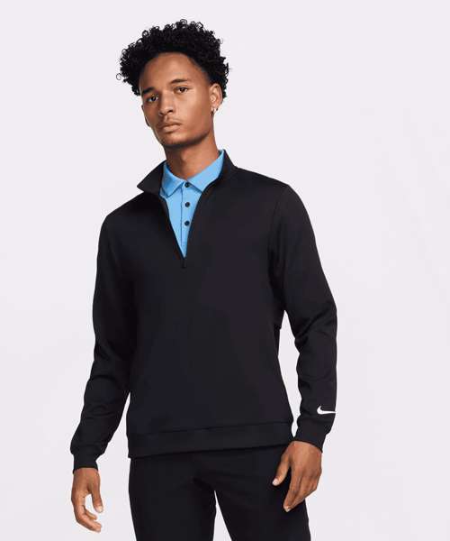 The Nike Tour half-zip top is perfect for adding a quick layer on a breezy golf course. With its smooth, lightweight knit, it’s built to provide just enough warmth while still keeping a movement-friendly fit. The half-zip design makes it easy to put on and take off, while the smooth fabric has a lightweight, stretchy feel that doesn’t interfere with your swing. A built-in back vent provides extra ventilation.