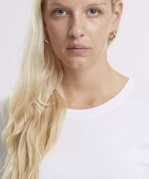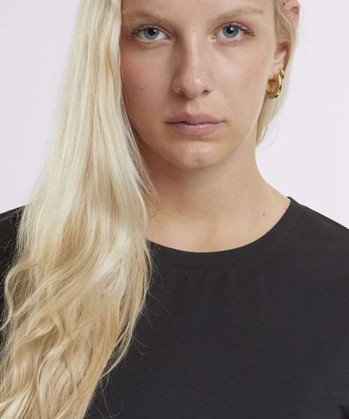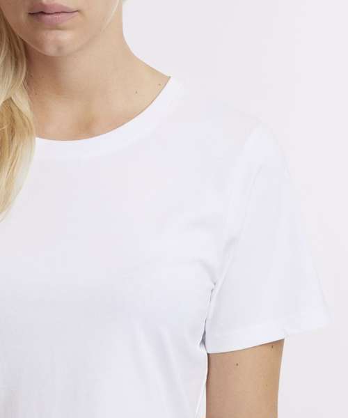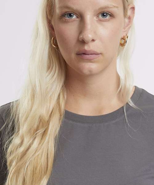 Effortlessly stylish with a loose fit. Modern appeal with a round neckline. Perfectly cropped for a chic look. Simple elegance in a plain pattern. Short sleeves for a casual vibe. 95% Certified organic cotton.