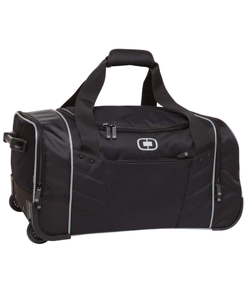 Skate effortlessly through the airport or train station with this durable wheeled duffle that's sized to fit your trip. Locking retractable handle for optimum mobility. Large centre storage area for clothes, toiletries and other travel accessories. Hidden front exterior zippered pockets for extra storage. Wrapped handle for comfortable carrying. Strong, durable grip handle on foot, soft grip handles on top for easy lifting. In-line skate wheels. Reach certified.