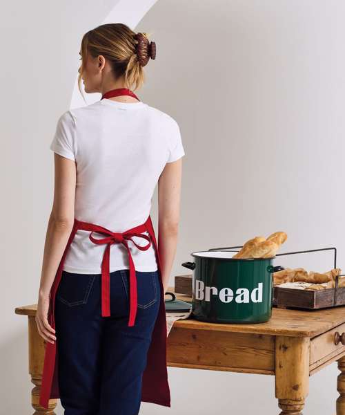 A heavyweight and durable bib apron made with 100% certified organic cotton. Available in twenty popular colours with self-fabric waist ties and neckband.