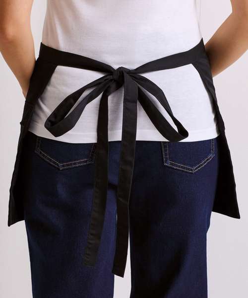 A short waist apron featuring two side zip pockets and one open centre pocket that is ideal for carrying tablet devices. A popular style of apron for waiting-on staff which is made from a durable polycotton fabric to withstand repeated washing.