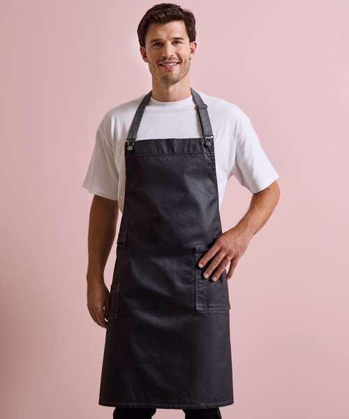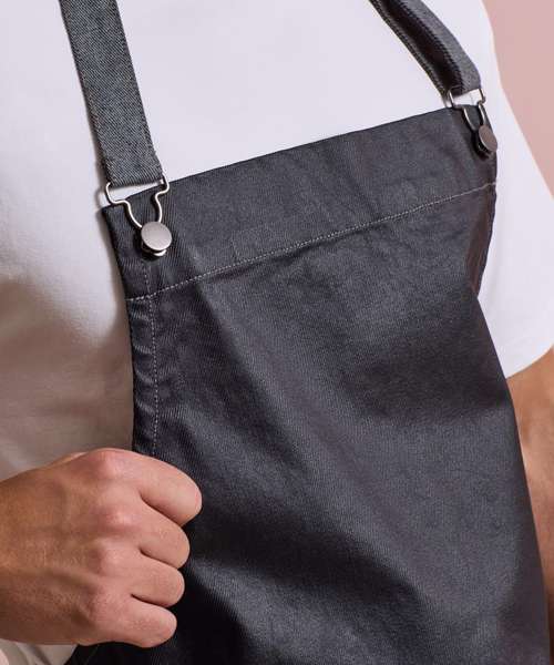 PR134: District waxed-look denim bib apron
