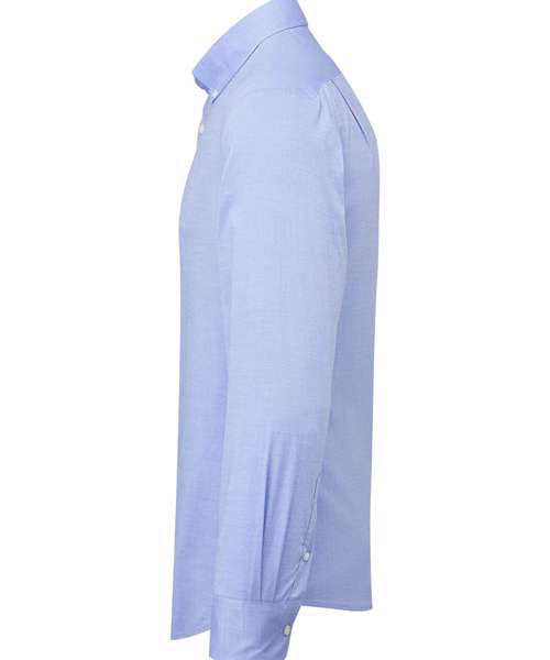 Long sleeve shirt in mercerised cotton, which enhances its overall look, feel and performance. Contains organic cotton and elastane for stretch and shape. Button-down collar. Self-coloured buttons with pearlised buttons on white. Double-button cuff with single button sleeve guard. Back yoke for fit over the shoulders and back darts to assist the shape. Curved hemline.