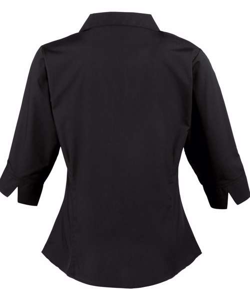 A semi fitted blouse for women that offers the wearer a fashionable three-quarter length sleeve. The sleeve is finished off with a neat vented cuff and the bust and back area offers a flattering cuts that gives the blouse its fitted appearance.