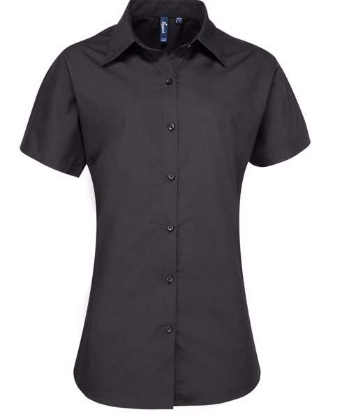 A ladies short sleeve Supreme Poplin blouse which comes in a heavy weight material resulting in a longer lasting blouse with improved appearance. The fitted styling, soft collar and rounded hem create a flattering fit resulting in a great everyday work blouse.