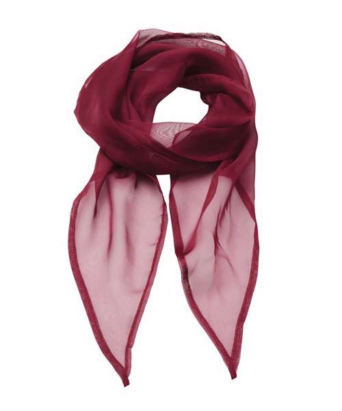 A great accessory for ladies to wear on the neckline, these light and lustrous chiffon scarves can be worn in a number of ways and are available in 38 colours from Premier's Colours Collection'. A charming and feminine piece to help elevate a plain work blouse.