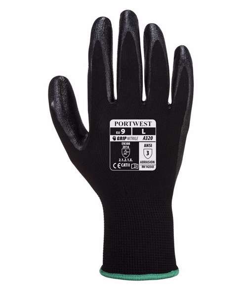 Recommended for precise operation requiring maximum dexterity. The Dexti grip is the top choice for general assembly work and precision parts handling where surface oil is present. The breathable seamless liner offers maximum dexterity and a second skin snug fit. Available in black to prolong glove life. Certified to EN388:2016 (2.1.2.1.X) and EN420.